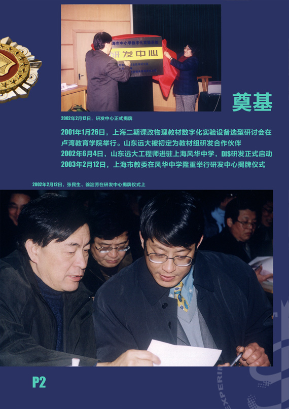 2002年初,為(wèi)配合新(xīn)時期的課程教材建設、積極探索理(lǐ)科(kē)教學(xué),為(wèi)數字化信息技(jì )術與理(lǐ)科(kē)教學(xué)的整合提供必要的物(wù)質(zhì)基礎和技(jì )術手段,推進學(xué)生學(xué)習方式改變的進程,上海教委基本确定了組建專門機構、自主研發上海二期課改所需數字化實驗設備及配套器材的基本思路。通過嚴格考核、缜密篩選,上海市教委選擇了山(shān)東省遠(yuǎn)大網絡多(duō)媒體(tǐ)有(yǒu)限責任公(gōng)司(現已改制成為(wèi)股份有(yǒu)限公(gōng)司)為(wèi)上海二期課改數字化實驗産(chǎn)品研發合作(zuò)夥伴,教委教研室、風華中(zhōng)學(xué)和山(shān)東遠(yuǎn)大三方合作(zuò)的格局初步形成,并于02年上半年開始運作(zuò)。2003年2月,由上述三方為(wèi)成員單位的上海市中(zhōng)小(xiǎo)學(xué)數字化實驗系統研發中(zhōng)心正式成立,著名(míng)實驗教學(xué)專家、風華中(zhōng)學(xué)前校長(cháng)馮容士先生任中(zhōng)心主任。